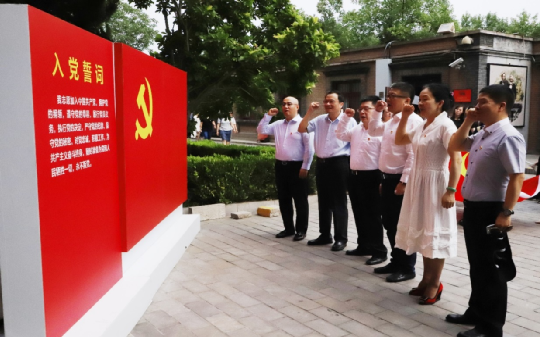 在红楼前,党委副书记、总裁杜建军带领大家面向党旗,举起右拳,一起重温入党誓词。铿锵有力的誓言,表明金控人坚定的政治信念和强烈的使命担当。醒目的入党誓词,更是提醒我们,无论何时决不能忘身为共产党人的初心和使命。